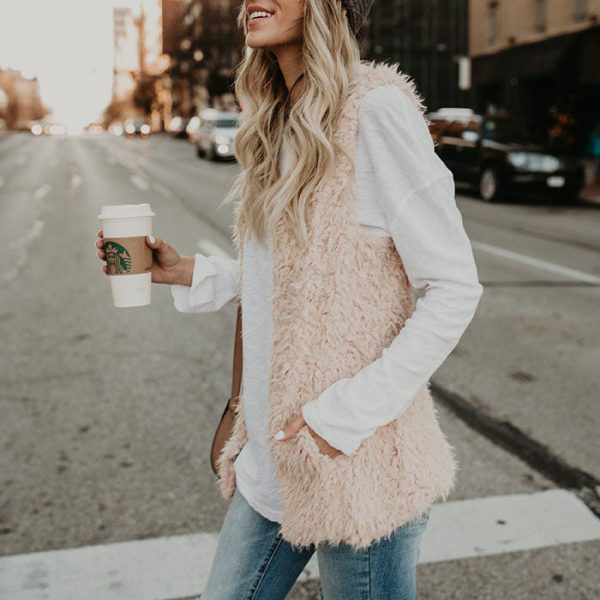 Fluffy Knitted Faux Wool Fur Sherpa Vest Womens quantity