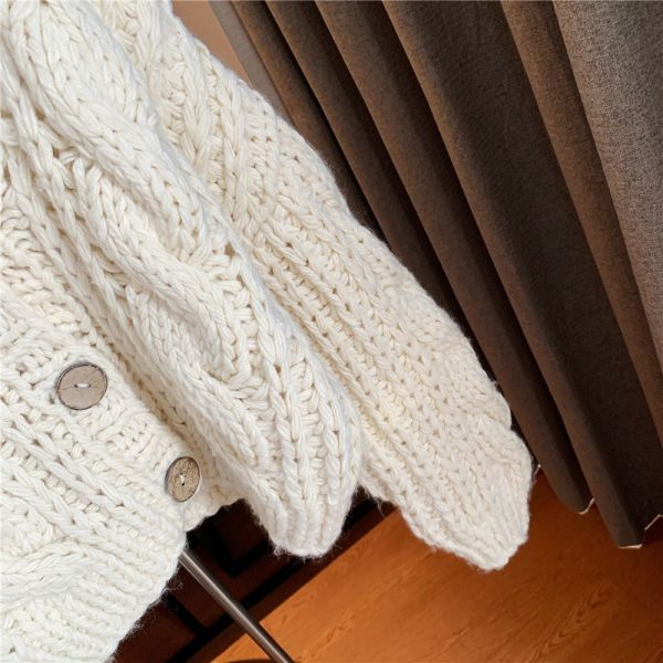/ Hand Knitted Braid Chunky Cable Knit V Neck Button Crop Cardigan Sweater